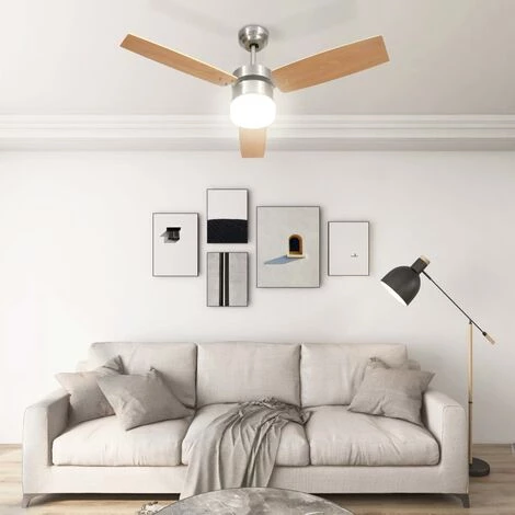 FabriquĂ© en chrome et en MDF, ce ventilateur de plafond est robuste et durable. Ce ventilateur dispose de 3 niveaux de vitesse diffĂ©rents et de fonction de minuterie. GrĂące Ă la tĂ©lĂ©commande incluse, le ventilateur peut ĂȘtre contrĂŽlĂ© facilement. Avec la lampe intĂ©grĂ©e, le ventilateur de plafond illumine la piĂšce et crĂ©e une ambiance agrĂ©able dans votre espace de vie.